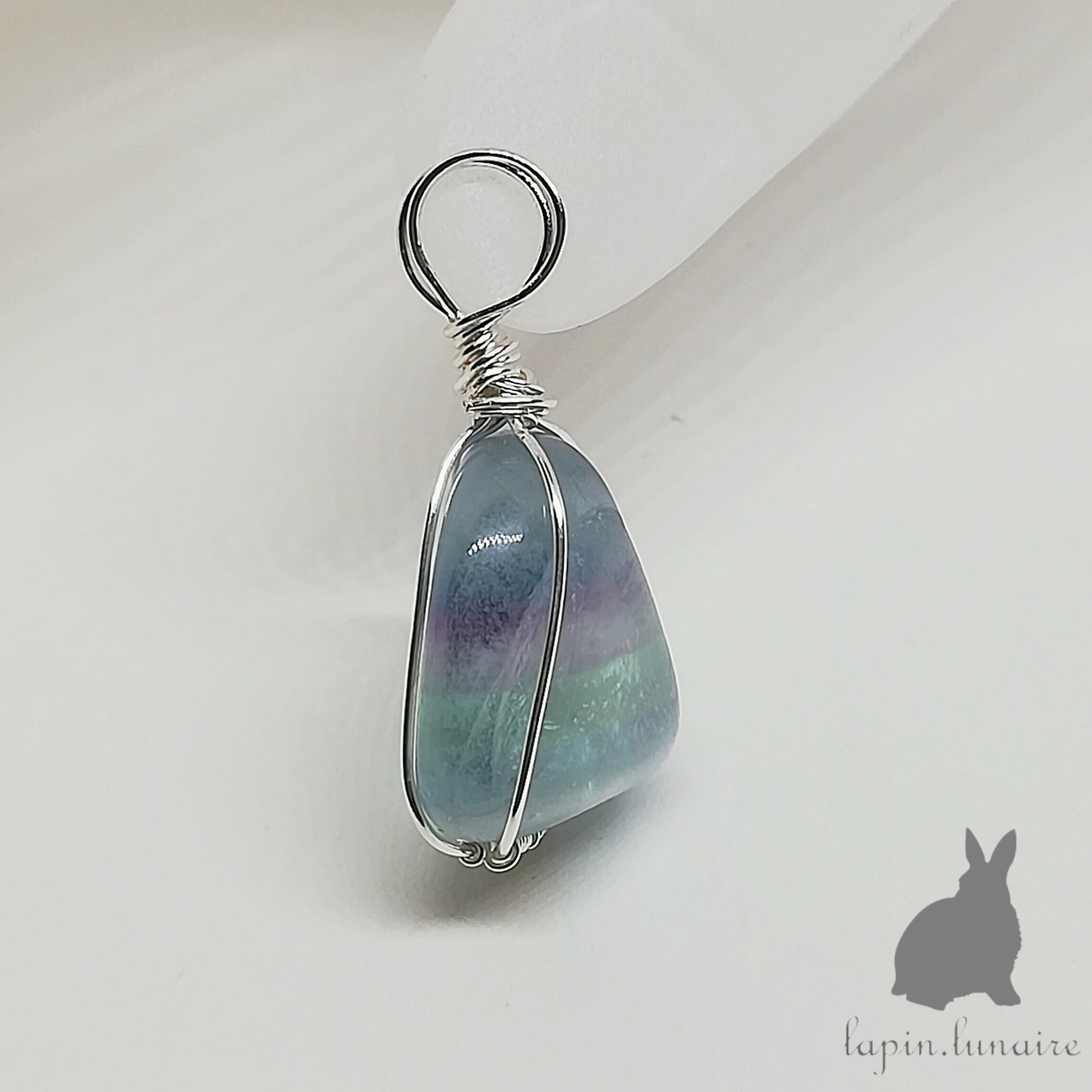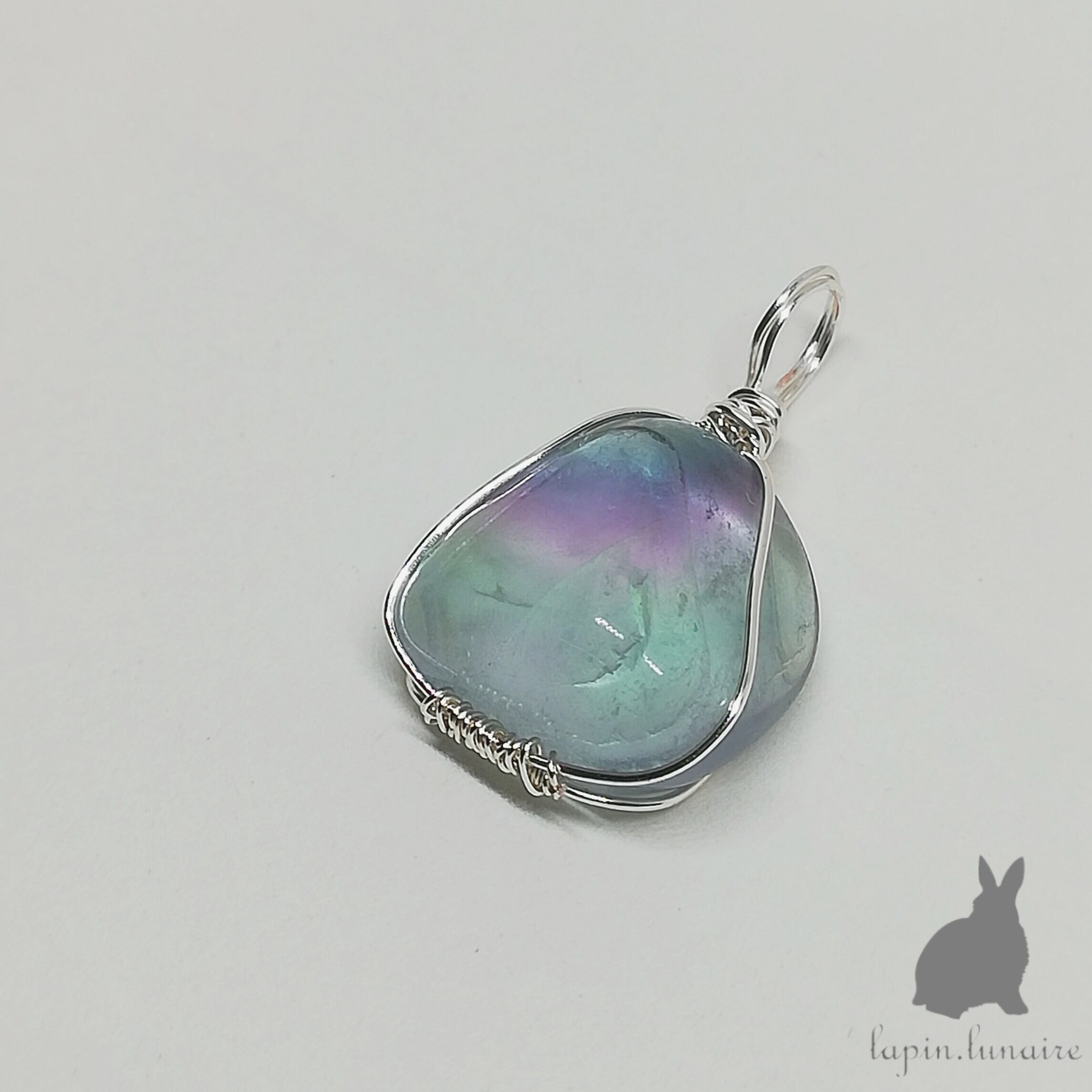 天然石フローライトのワイヤーラップチャーム