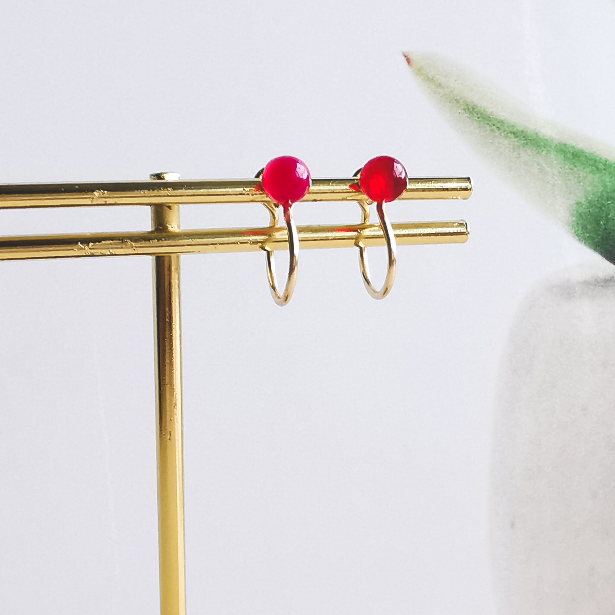 フューシャピンクカルセドニーのノンホールピアスです。